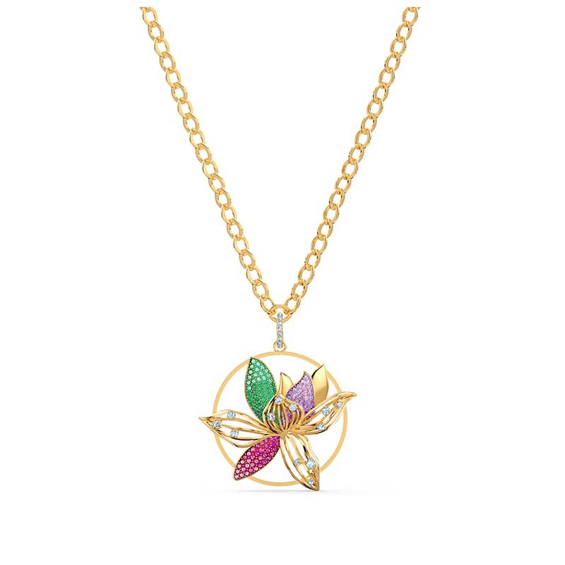 Hollow Colored Diamond Magnolia Necklace And Earrings