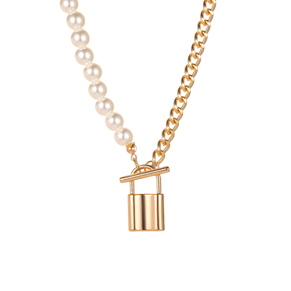 Rice Pearl Lock-shaped Scallop Pendant Necklace Women