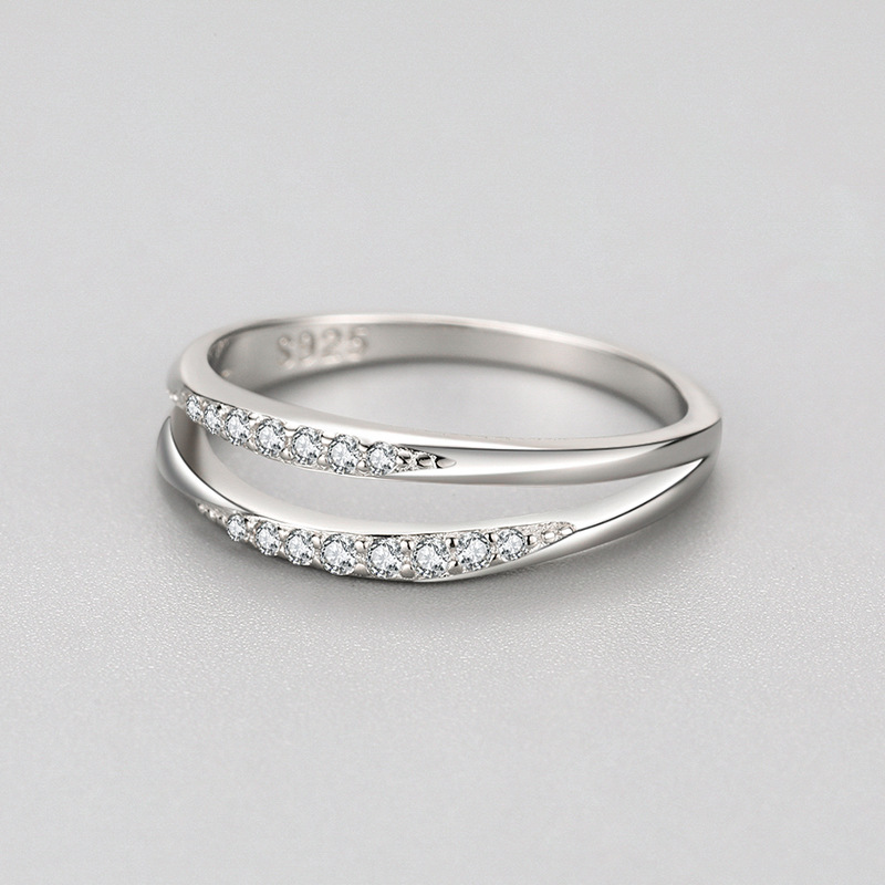 All-matching Twin Moissanite Sterling Silver Simple Ring