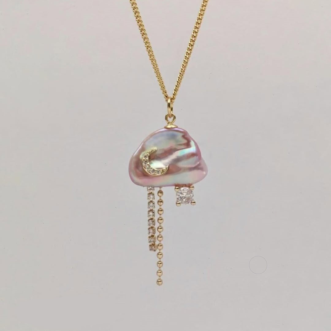 Dopamine Cloud Necklace Baroque Pearl Moon Star Pendant