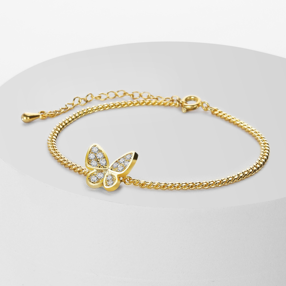 Simple Copper Inlaid Zircon Butterfly Bracelet