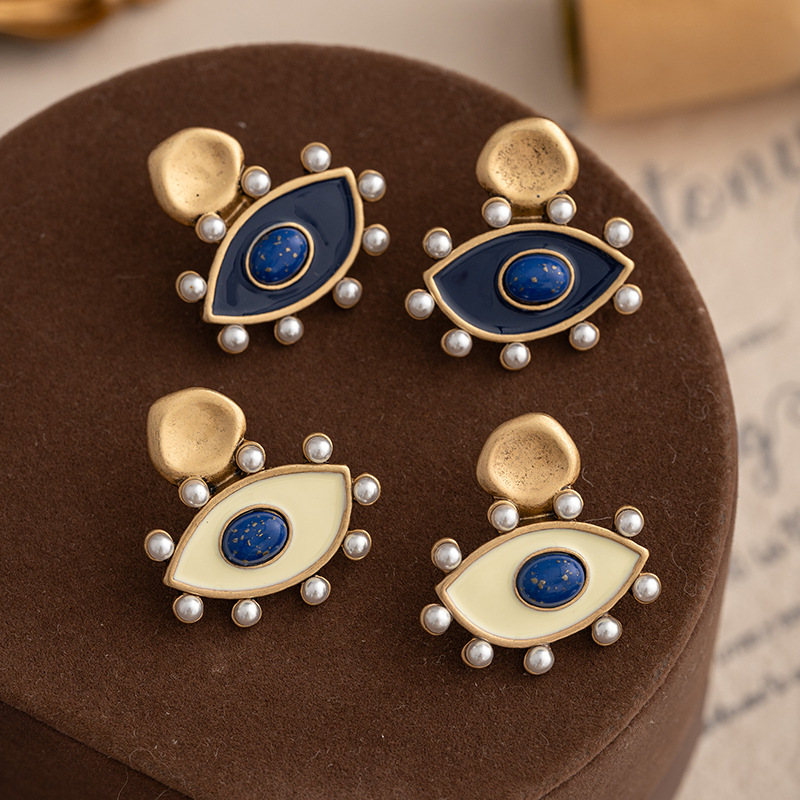 Evil Eyes Earrings Women's European And American Pearls Enamel Drop Glazed Stud Earrings